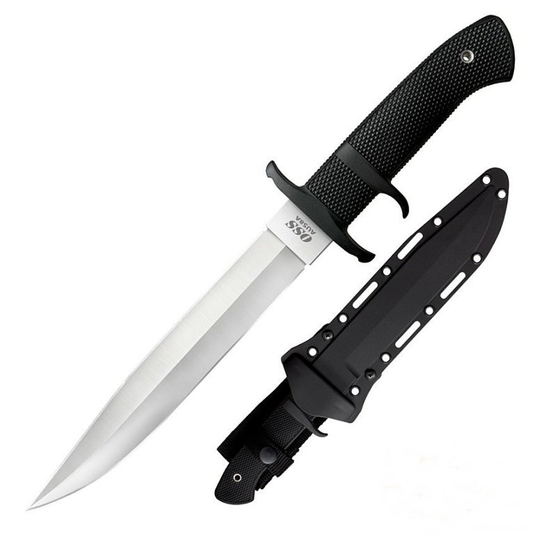 Pevný nůž Cold Steel OSS s 21 cm dlouhou, oboustranně broušenou čepelí, je bezpochyby jedním z nejúčinnějších nožů při lovu nebo boji muže proti muži. Čepel je vyrobena z japonské oceli AUS 8A. Tato nerezová ocel má velmi dobré pevnostní vlastnosti. Je vedena především jako materiál na řezné nástroje. Nůž je díky síle matriálu a full tang konstrukci maximálně pevný.