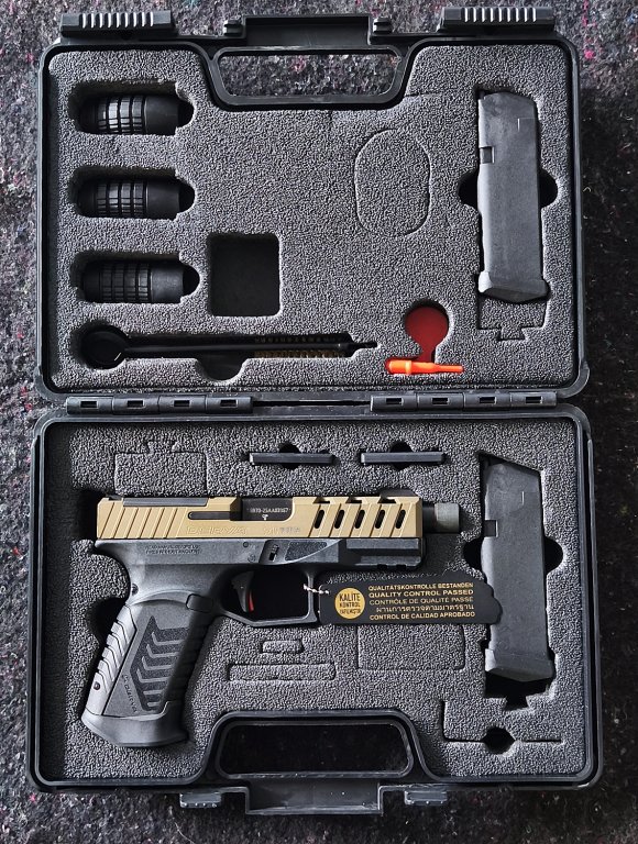 | Součástí balení | Pistole, výměnné hřbety, 2x destička pro kolimátor, čištění, vlaječka |