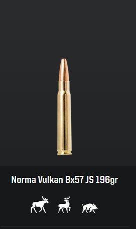 Vlastnosti produktu Norma 8 x 57 JS Vulkan, 196 gr